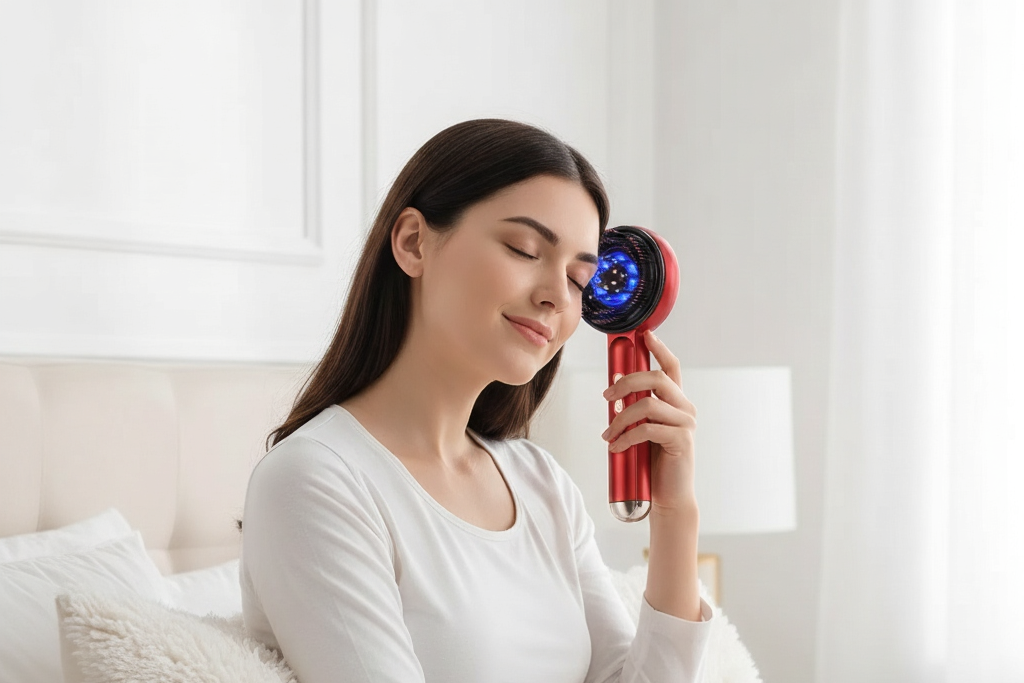 Revitalize your skin with EMS microcurrent and red light therapy – lift, firm, and smooth your face, eyes, and neck effortlessly